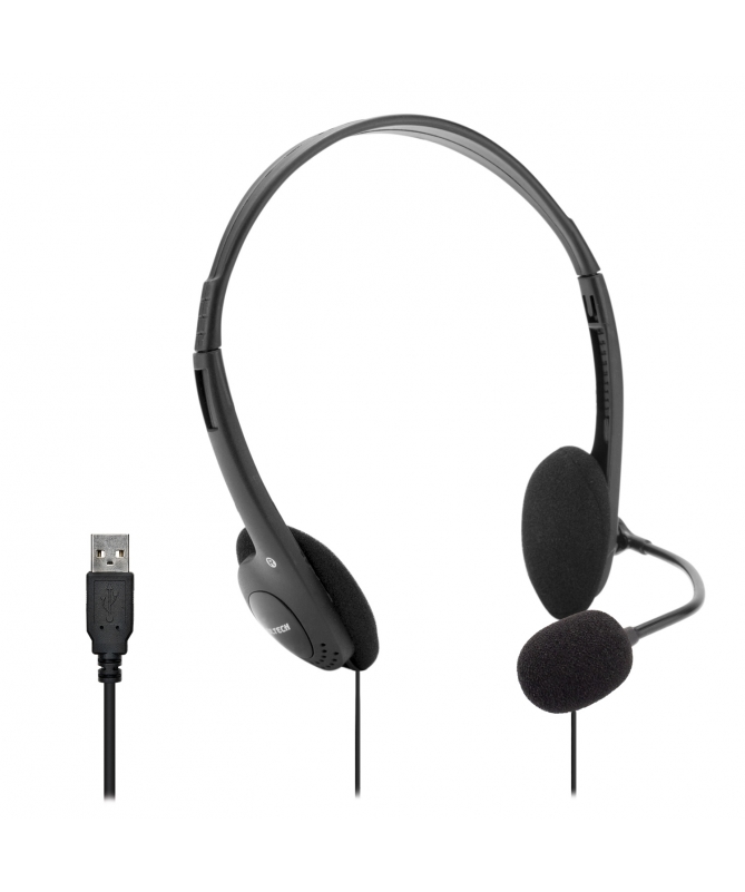 VulTech HS-03 Cuffie On-Ear USB Nero con Microfono con archetto regolabile con controller volume e muto, per PC, ufficio, Computer, Portatile, Laptop, Macbook, Teams, Meet, Zoom - Headset